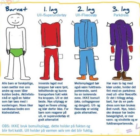 Under ligger bildet av «trelags-prinsippet», dette er en god veileder for påkledning under vinteren.