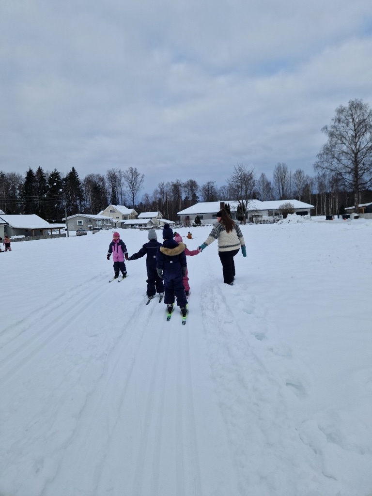 Vi hadde en skidag her i barnehagen, der vi laga løype langs gjerdet, og vi hadde en Felles skidag sammen med Villamoen: Ylileken :)