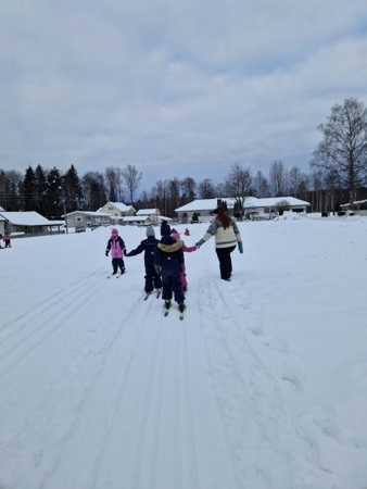 Vi har også fått kjent på følelsen av å bruke kroppen ute i snøen,vi har aka, gått på ski. Leika sisten m.m...Skigåing har blitt en stor interesse for de fleste etter at vi arrangerte ett par skidager :)