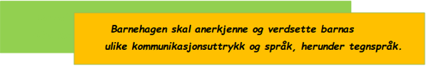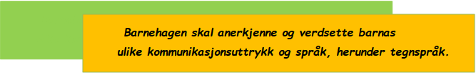Fremover vil vi begynne å introdusere og arbeide med tegn til tale sammen med barna. Dette er noe vi ser har en meget god påvirkning på språket til alle barna, det er inkluderende ved at barn og voksne kan kommunisere godt uavhenging av alder, språk og språkutvikling. Vi vil begynne med å introdusere noen tegn i måneden, som vil bli kalt for «månedens tegn». Disse 4 tegnene vil vi også legge inn i månedsplanen, så dere der hjemme kan gjenkjenne om barna deres bruker tegnene hjemme også. Dette blir meget spennende og følge utviklingen på, både for barna og oss voksne.